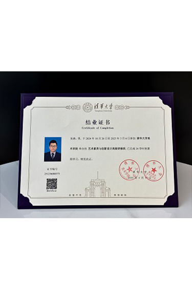 吳濤榮獲 清華大學美術學院《藝術素養(yǎng)與創(chuàng)新設計高級研修班》結業(yè)證書